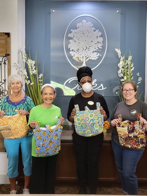 walker bags for residents at a local senior living facility